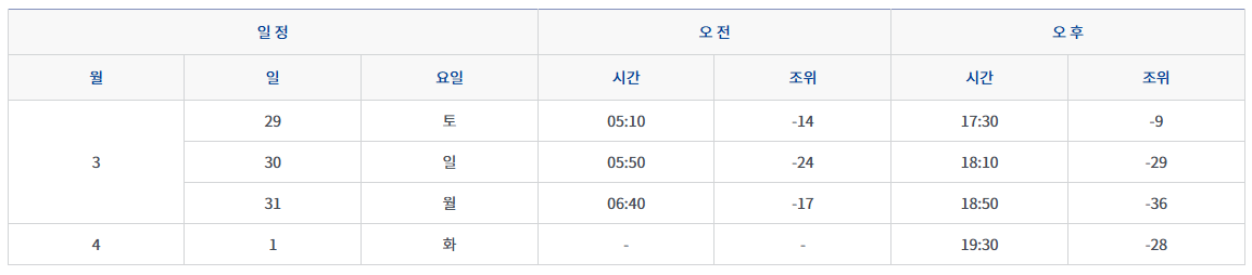 - 바닷길이 열리는 시간은 조수 간만의 차에 따라 달라져요