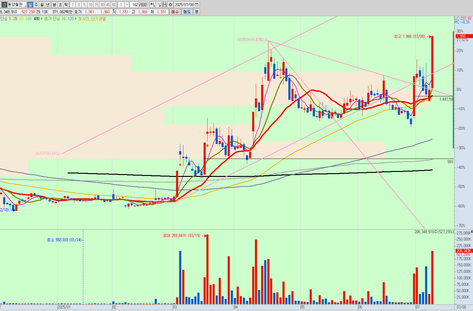 오늘 새벽 미국이 8월 1일부터 모든 물품에 대해 관세 25%를 부과하겠다면서 서한을 보내왔다. 그래서 이에 따른 우리 협상 카드로 알레스크 LNG 투자 관련하여 조건을 제시할것이라는 뉴스 등이 나오면서 주가가 반등하기 시작했다. 글을 적고 있는 순간 상한가를 터치하였다.