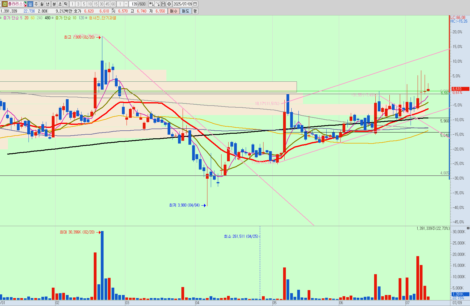 큰 반등은 아니지만 어제 종배를 했고, 오늘 장 시작 직후 6% 넘는 상승을 보여줌