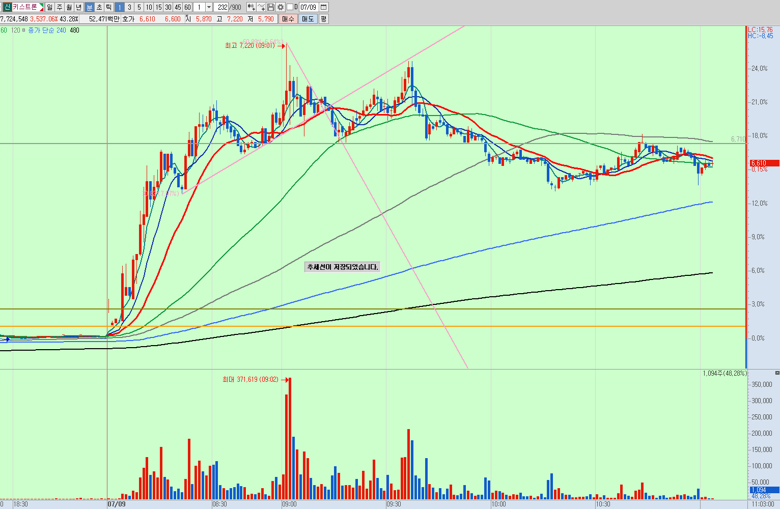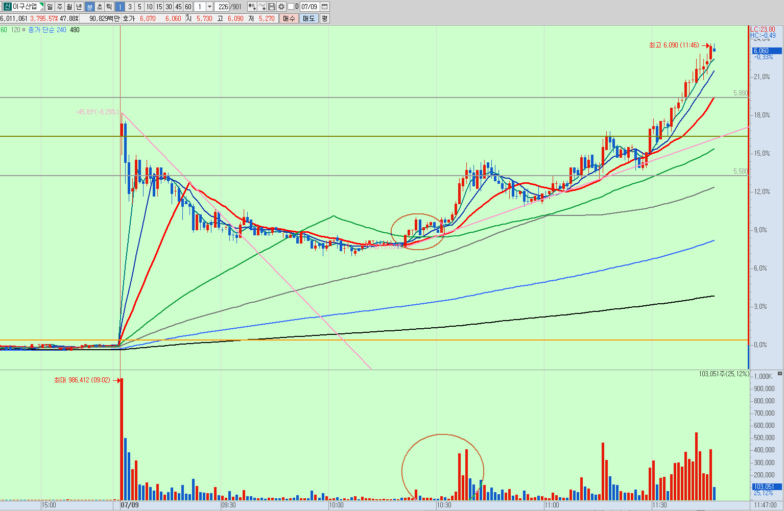 오늘 장초반 강한 이슈때문에 모든 사람들이 매수를 하다보니 갭이 뜨게 되었다.