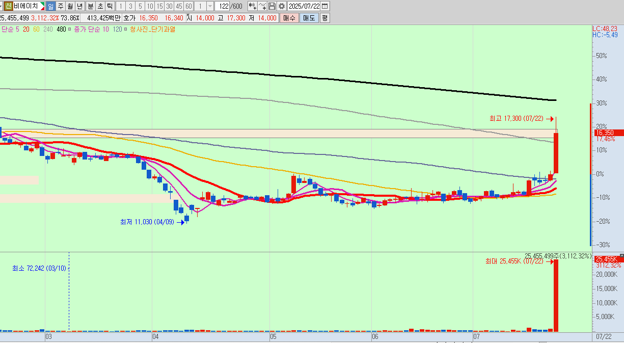 # 비에이치 일봉