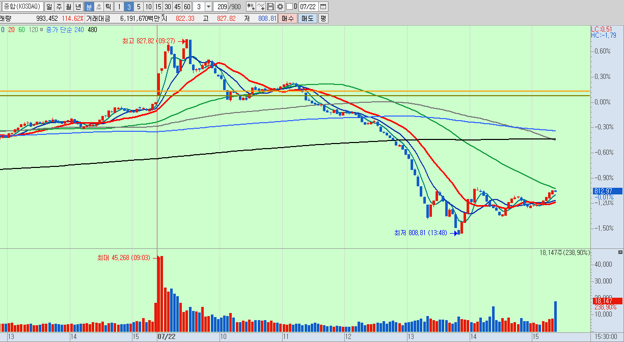 # 코스피, 코스닥 3분봉