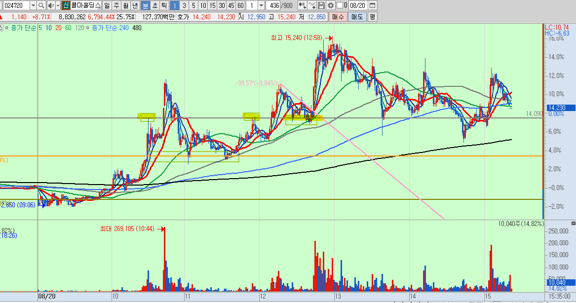 #콜마홀딩스(일봉보다 분봉 공부용)