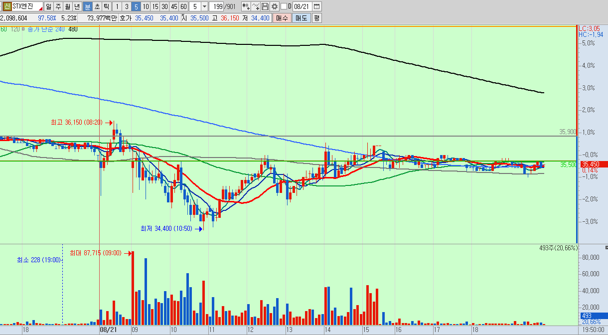 어제에 이어 오늘도 관종이다. 오늘은 소량 매수해봤는데 이유는 5분봉을 보면 오늘의 시가 아래로 밀렸다가, 장 막판에 안착하면서 정규장이 마감이 되었다. 이것은 아래에서 매수세가 있었고, 누군가 주가 위치를 시가 위로 올려놨다는 의미가 되기 때문에, 주가를 관리하는 세력이 있고, 일봉을 보면 거래량을 줄이면서 도지캔들을 만들었다, 그래서 조만간 추세전환이 있지 않을까 싶었다.
