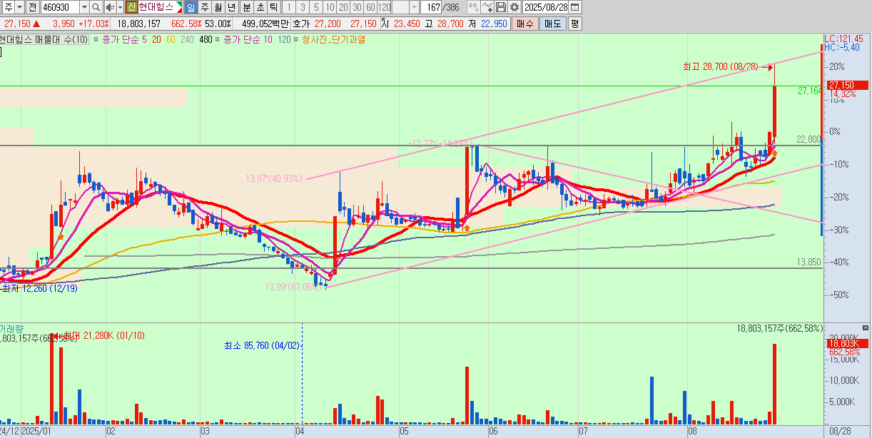 현대힘스 주가가 급등하고 있다. HD현대중공업과 HD현대미포 합병으로 통합 법인을 출범한다는 소식에 조선업종에 대한 투자심리가 개선되는 것으로 보인다. 28...