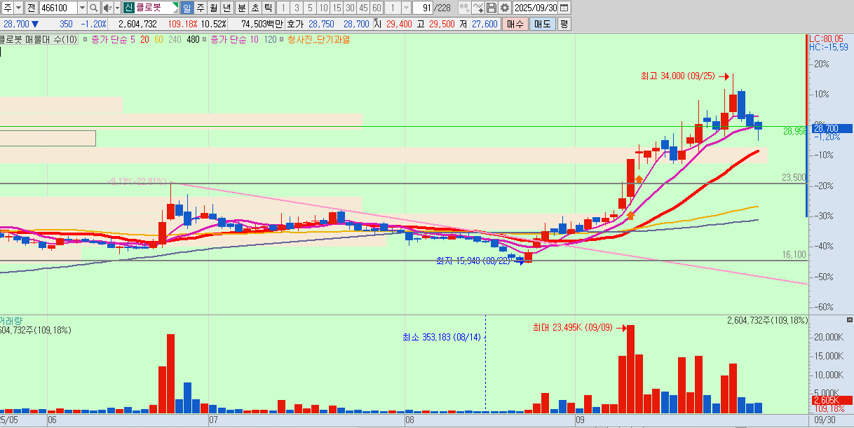 25. 09. 30. 화요일, 오늘의 시황 및 관심종목_클로봇